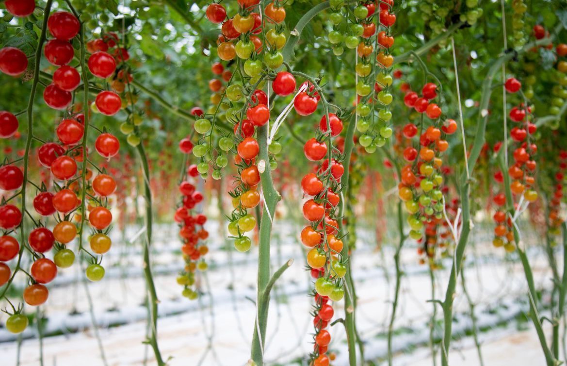 Grazie al controllo delle temperature e della quantità di luce, è possibile distribuire la produzione di pomodori durante tutto l'anno.